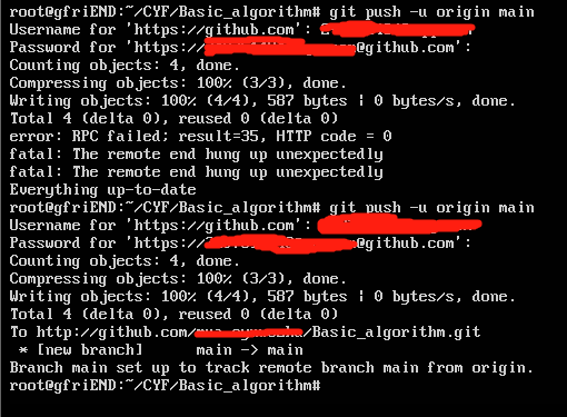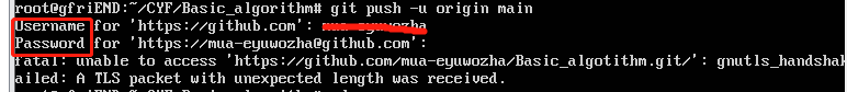 注册访问令牌之后就是再执行一次git push -u origin main命令,账号不变,密码输入访问令牌号即可