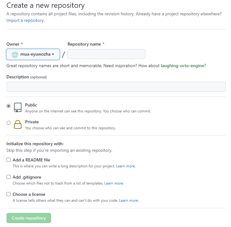 1.首先打开github,注册账号后,在右上角添加新的云端存储库