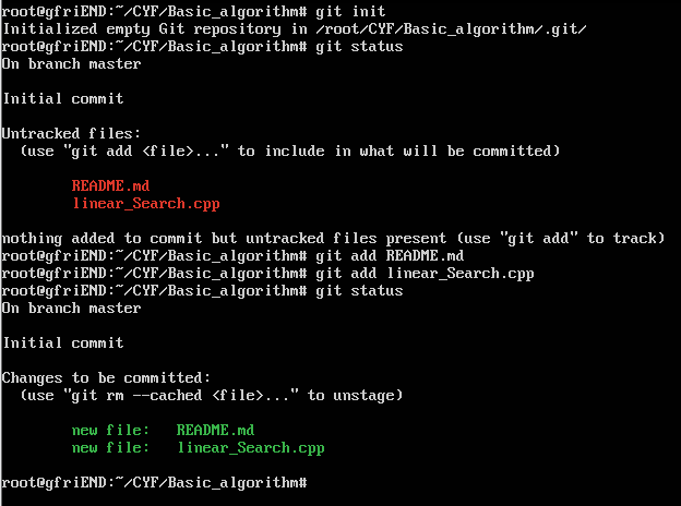 git init之后git status可以看到存储库已经创建好了,但是两个文件还没有添加进去