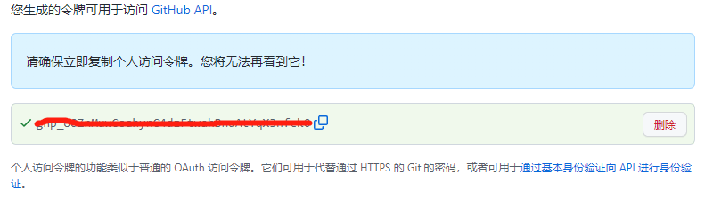 然后就获得如下的令牌,一定要保存好,之后就无法查看了