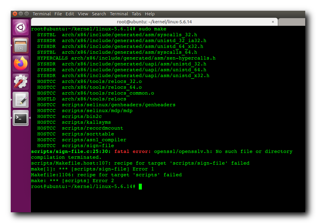 root@ubuntu:~/kernel/linux-5.6.14# sudo make