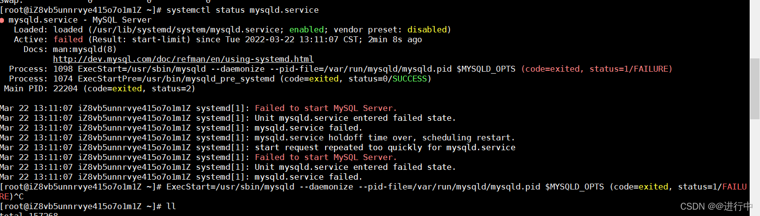 ?通过?systemctl status mysqld.service 或者 journalctl -xe命令查看具体报错原因