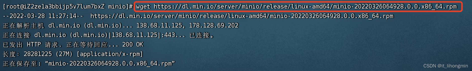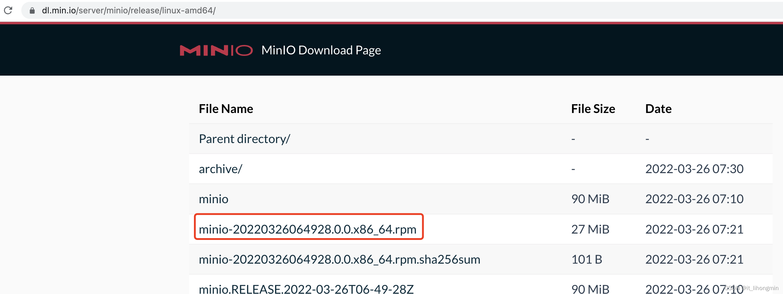 wget??https://dl.min.io/server/minio/release/linux-amd64/minio-20220326064928.0.0.x86_64.rpm