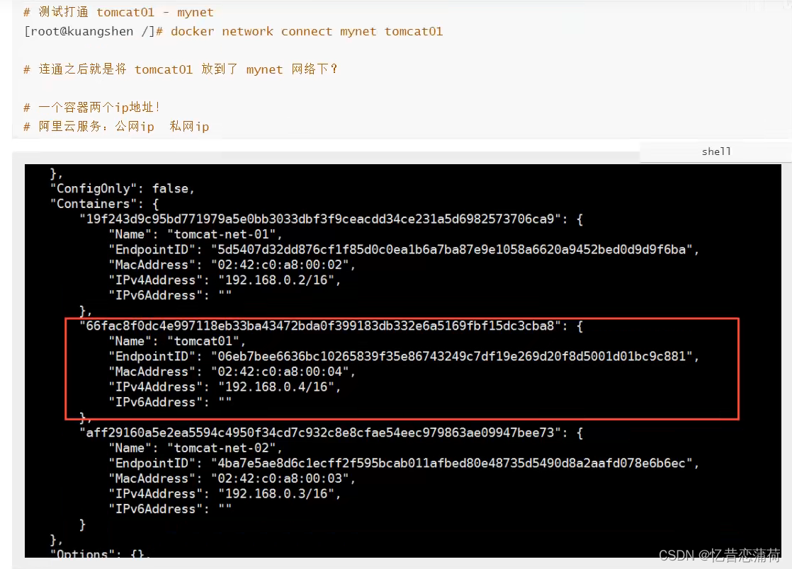 就是将另外一个网段的tomcat01容器加入到mynet网络中