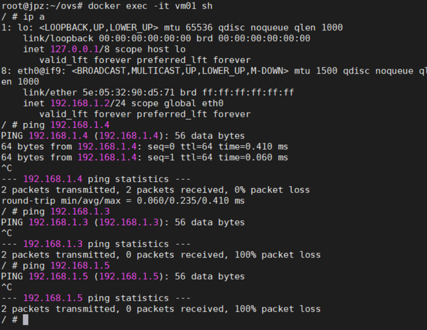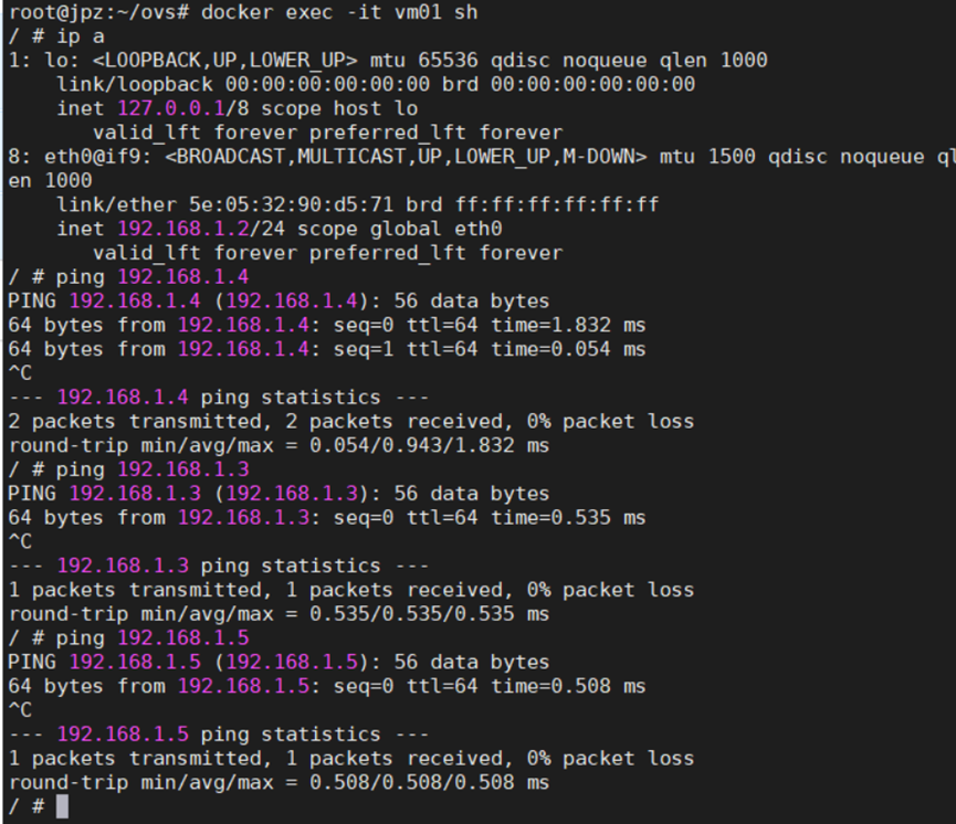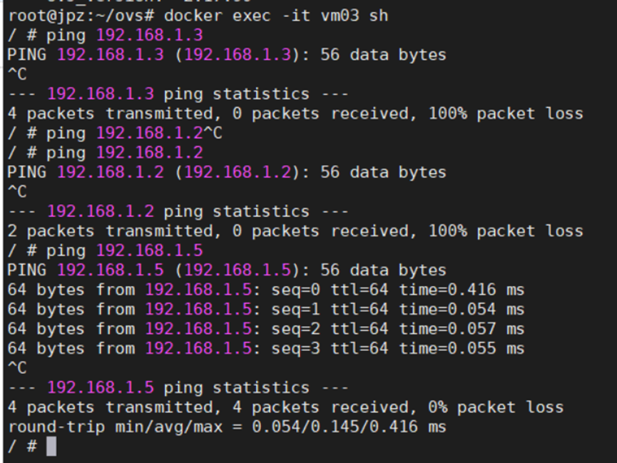 ovs-docker add-port jpzbr0 eth0 vm03 --ipaddress=192.168.1.4/24