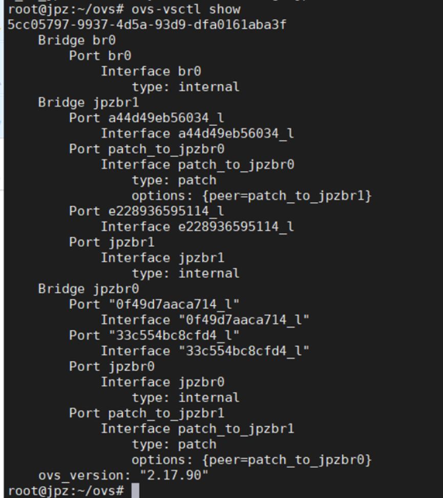 ovs-vsctl add-port jpzbr0 patch_to_jpzbr1