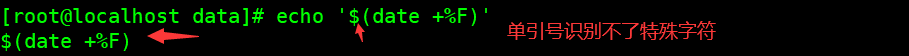 - 单引号' ':会把引号的内容当成整体来看待,禁止引用其他变量值,shell中的特殊符号都被视为普通字符