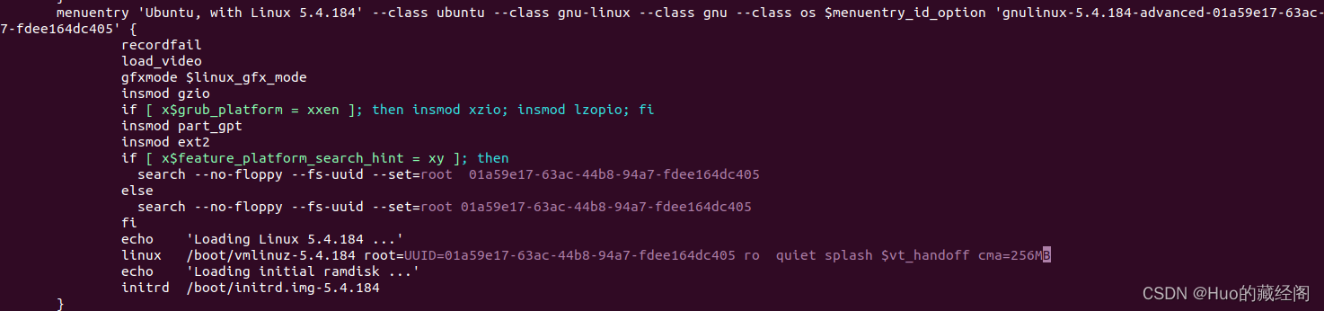 x86 ubuntu默认CMA是关闭的,如果要配置需要修改/boot/grub/grub.cfg文件,查找到对应启动内核版本在命令启动参数添加cma参数,设在cma are大小为256MB