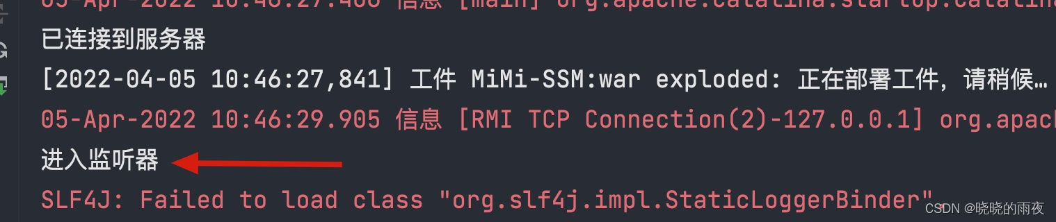 仔细想一下,查看我监听器的代码,监听器实现了ServletContextListener接口,是一个全局监听器,也就是项目刚启动是就会生效,于是我添加了一条输出信息,就是“进入监听器”
