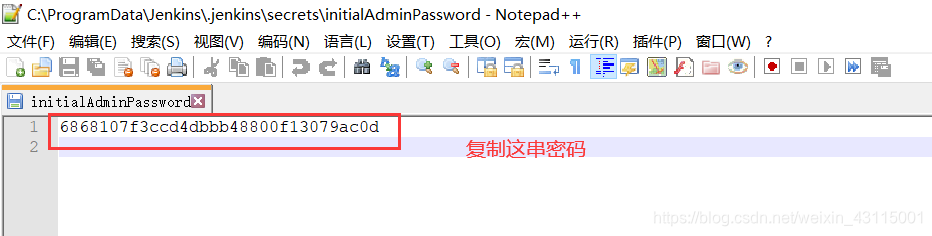 安装后首次登录需要找到系统动态设置的初始密码,根据浏览器中的提示路径,找到对应路径下的initialAdminPassword文件,并用文件编辑软件打开,复制里面的密码;   -