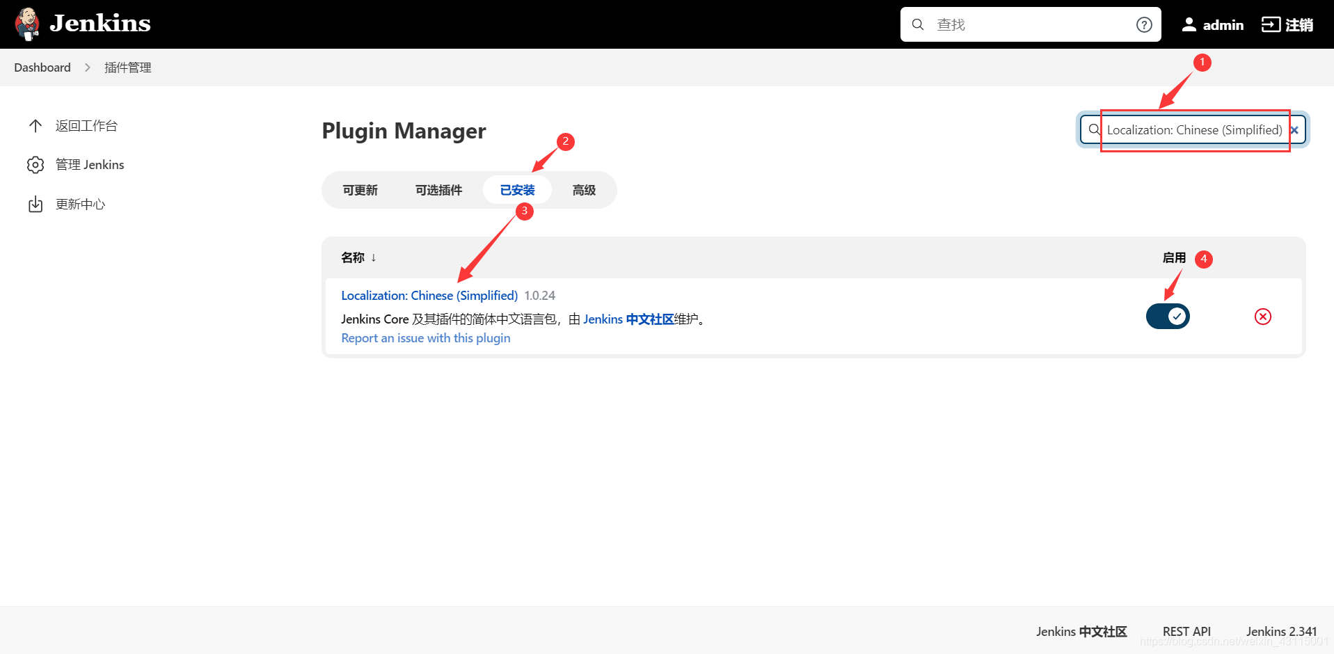 注:以上步骤针对于最新版本Jenkins 2.341 可能不适用,按照步骤操作后,部分按钮字段仍然显示英文,目前笔者还没找到其他方法可以解决。
