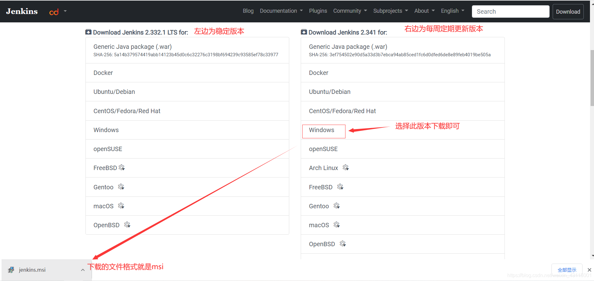 - 下载Jenkins,地址:https://www.jenkins.io/download/