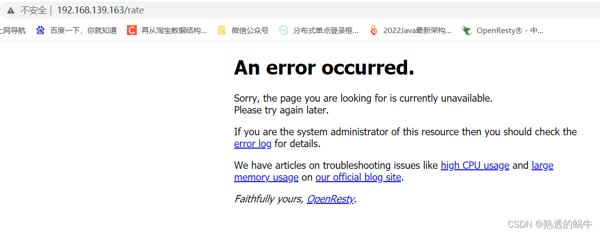 b、重启openresty容器,访问,当快速访问时页面报错,错误码为503
