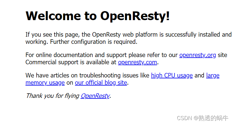 OpenResty是一个基于Nginx与 Lua 的高性能 Web 平台,其内部集成了大量精良的 Lua 库、第三方模块以及大多数的依赖项。用于方便地搭建能够处理超高并发、扩展性极高的动态 Web 应用、Web 服务和动态网关。OpenResty的目标是让你的Web服务直接跑在Nginx服务内部,充分利用Nginx的非阻塞 I/O 模型,不仅仅对 HTTP 客户端请求,甚至于对远程后端诸如 MySQL、PostgreSQL、Memcached 以及 Redis 等都进行一致的高性能响应。由于OpenResty自身内部有nginx,也可以理解为加强后的nginx。