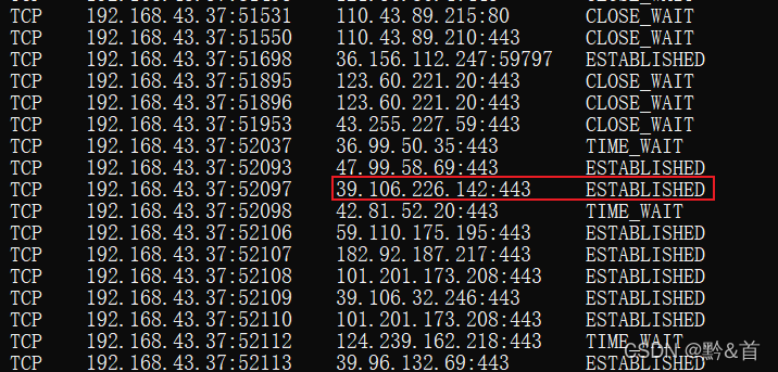 ? ? ? ? ?上述通过nslookup命令我们查到了csdn的IP,那么现在可以在浏览器中访问网站www.hbfu.edu.cn,利用netstat -n查看本机网络状态,是否有关于www.hbfu.edu.cn网站的连接建立