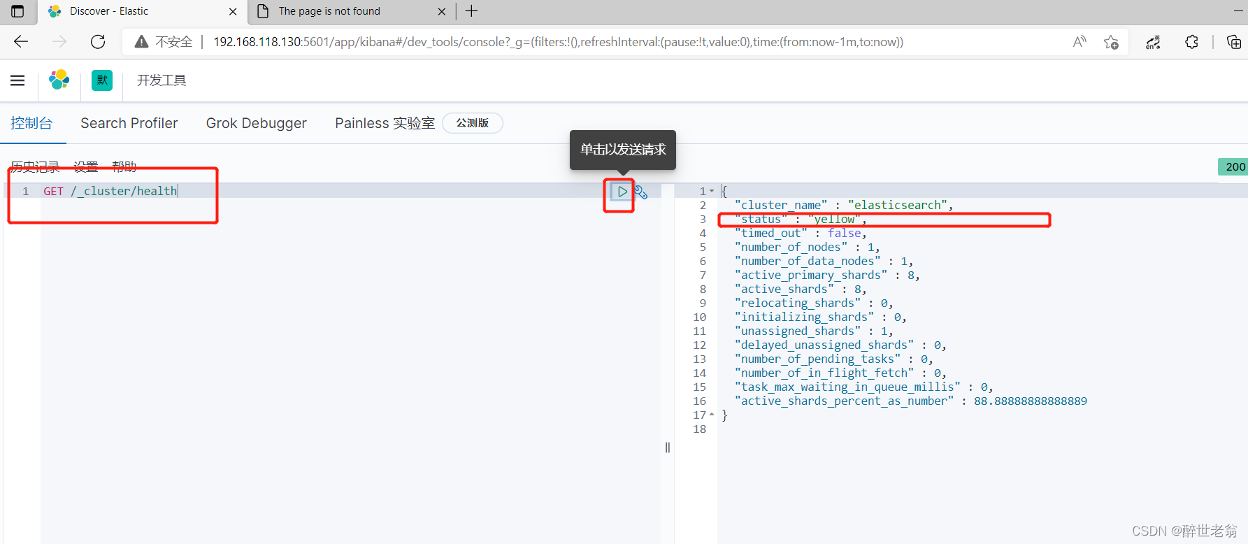?发送get请求,后面跟url就可以看到结果,这里看到是yellow状态。