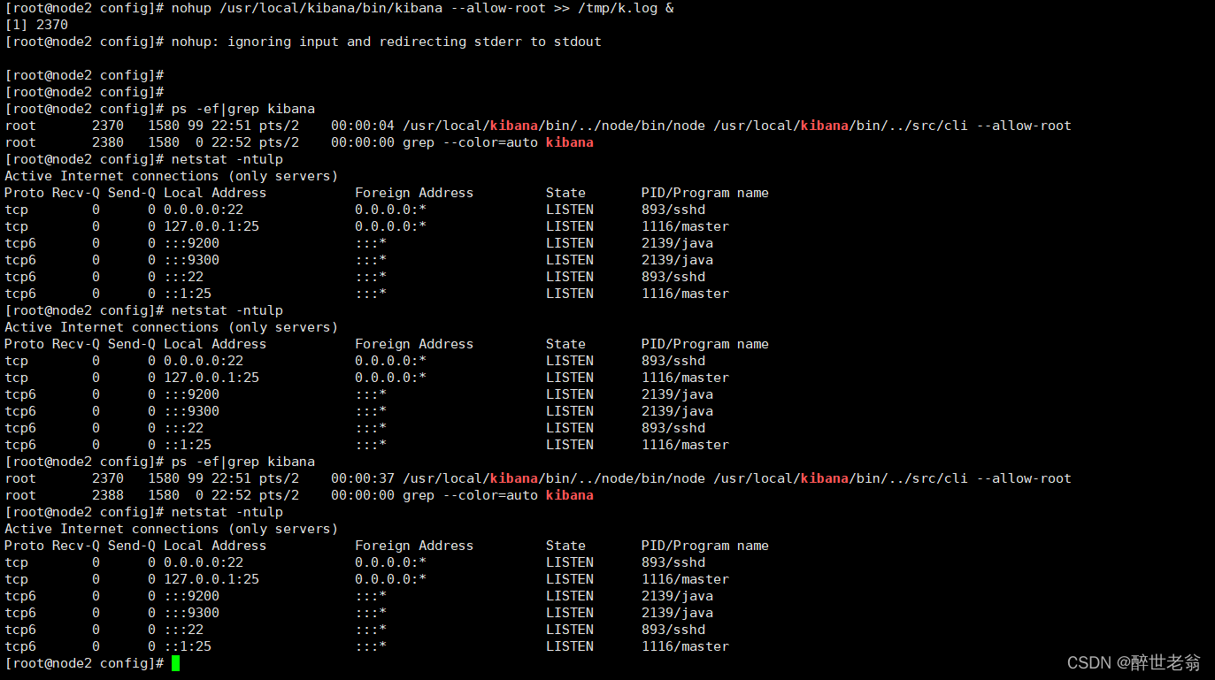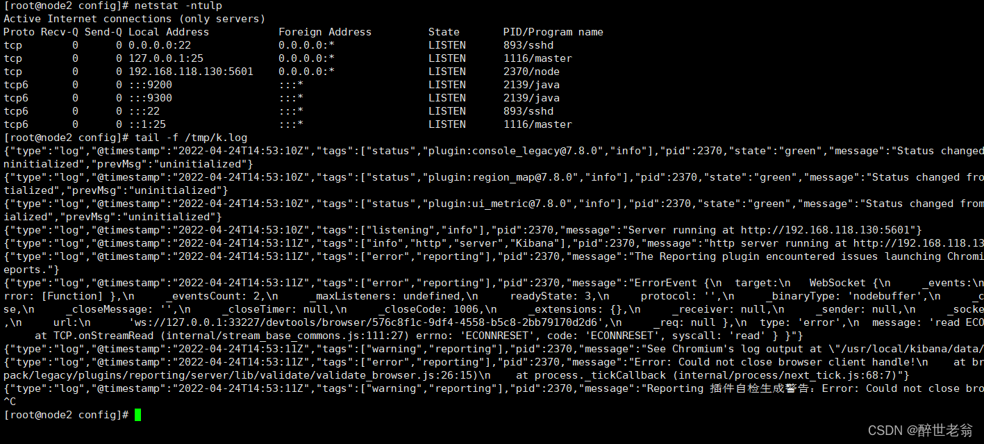 netstat -ntulp #查看端口有无监听,如果没有等待一会