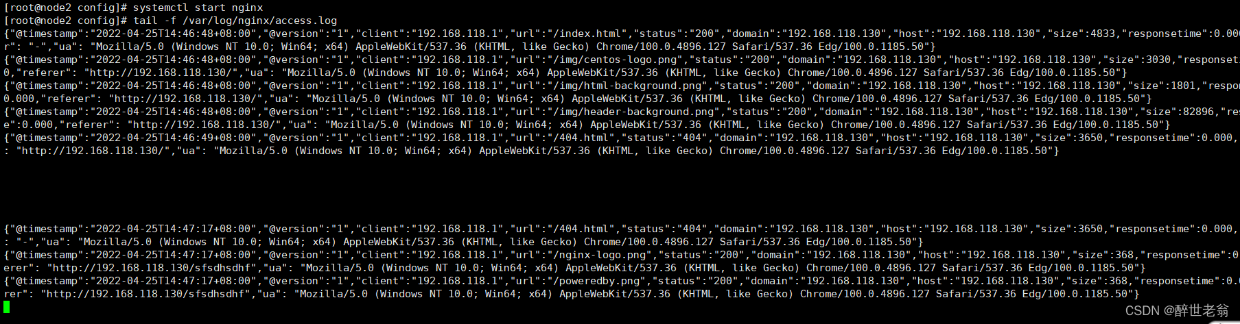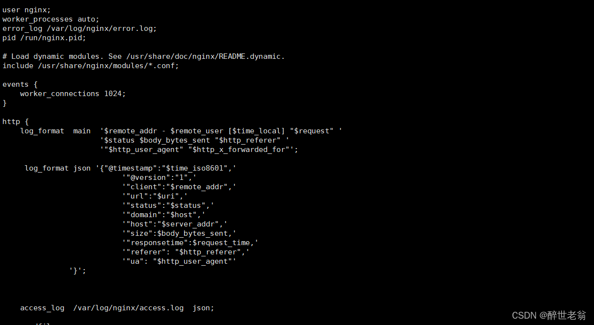 access_log /var/log/nginx/access.log json; #日志格式修改为json
