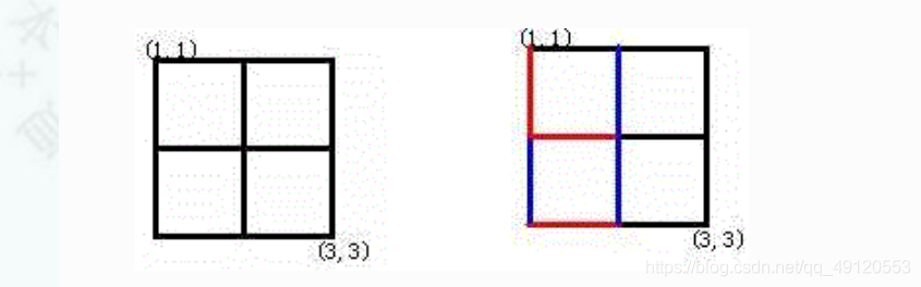 【题目描述】 Alice和Bob玩了一个古老的游戏:首先画一个n × n的点阵(下图n = 3) 接着,他们两个轮流在相邻的点之间画上红边和蓝边: