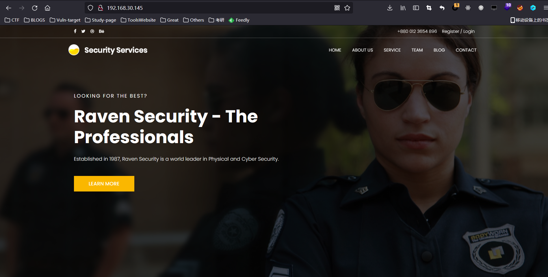 http://raven.local/service.html(我们是在/team.html,/service.html,/contact.php等一个一个试出来的)