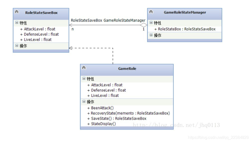 ? ? ? ? 3.管理者(GameRoleStateManager):负责存取备忘录,不能对的内容进行访问或者操作。