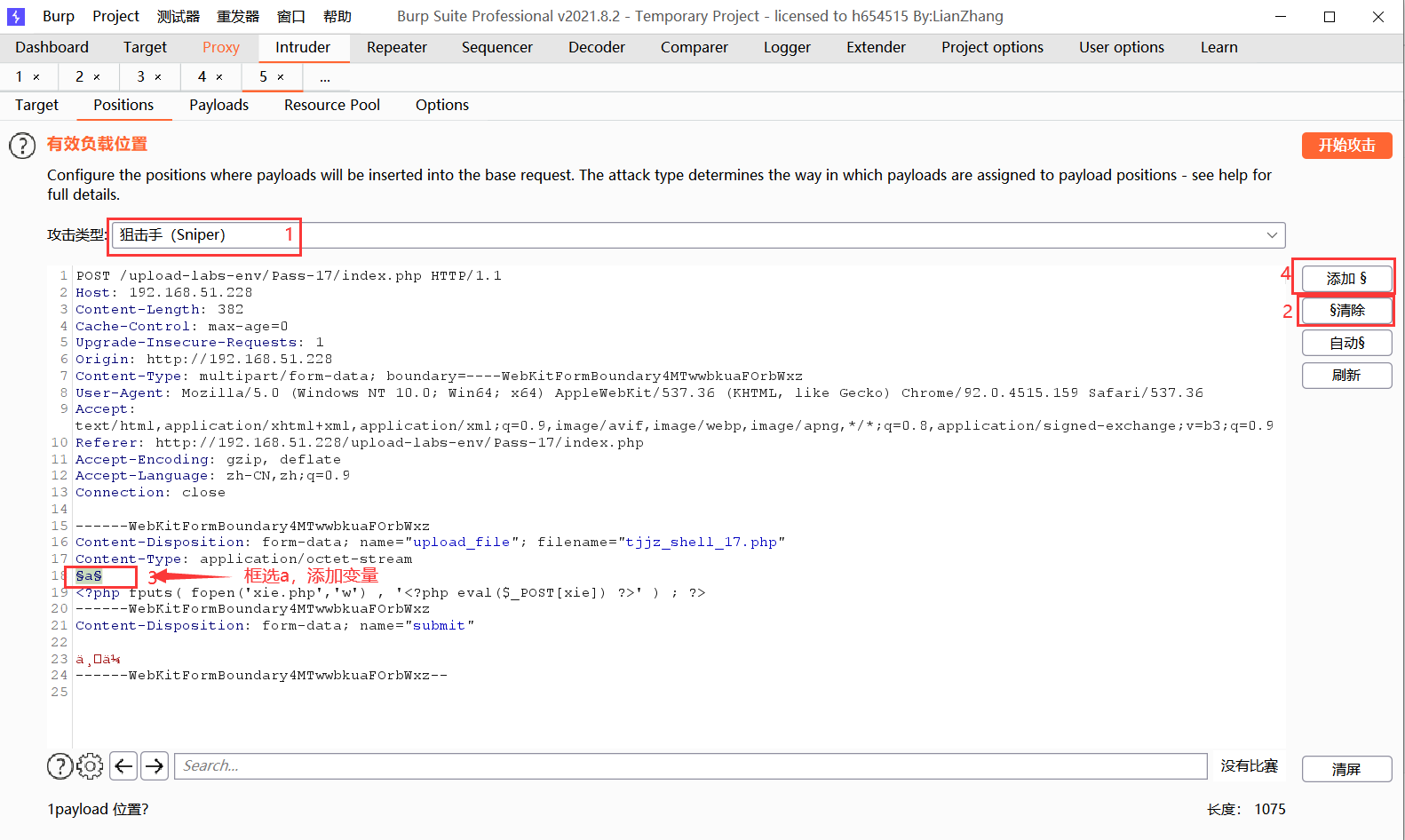 ?payload下——没有负载——生成次数——开始攻击 ?**攻击过程中要不断刷新执行上传文件路径 pass-18