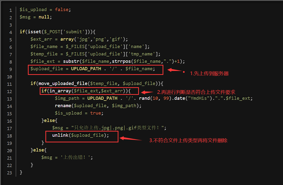 条件竞争 条件:要知道源码? 声明:这一关条件竞争,属于套娃脚本,根据源码可知,文件是先上传至服务器路径,在进行判断,不符合在删除,我们就趁上传至服务器的时间差,完成套娃脚本执行,生成新的脚本文件。