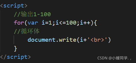 ? ? ? ? ? ? ?语法:for(var 计数变量=初始值;循环条件;递增或者递减){