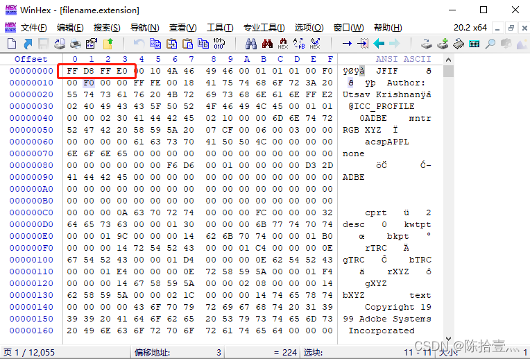 ?修复一张图片,将它下载到桌面再用WinHeX打开加入图片文件头FFD8FFE0