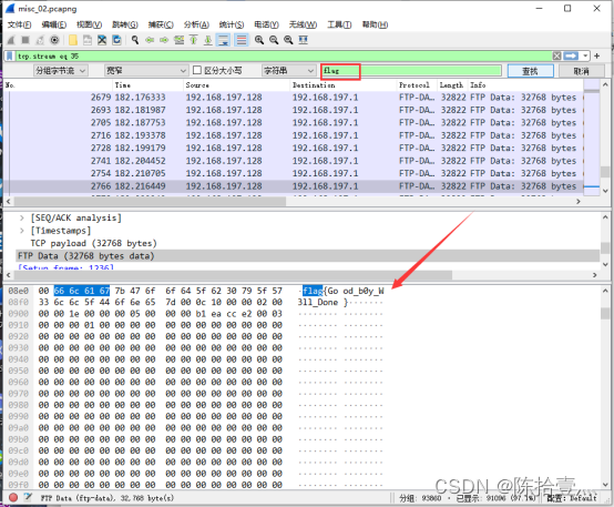 下载一个数据包文件? 打开后ctrl+f在分组字节流中查找flag