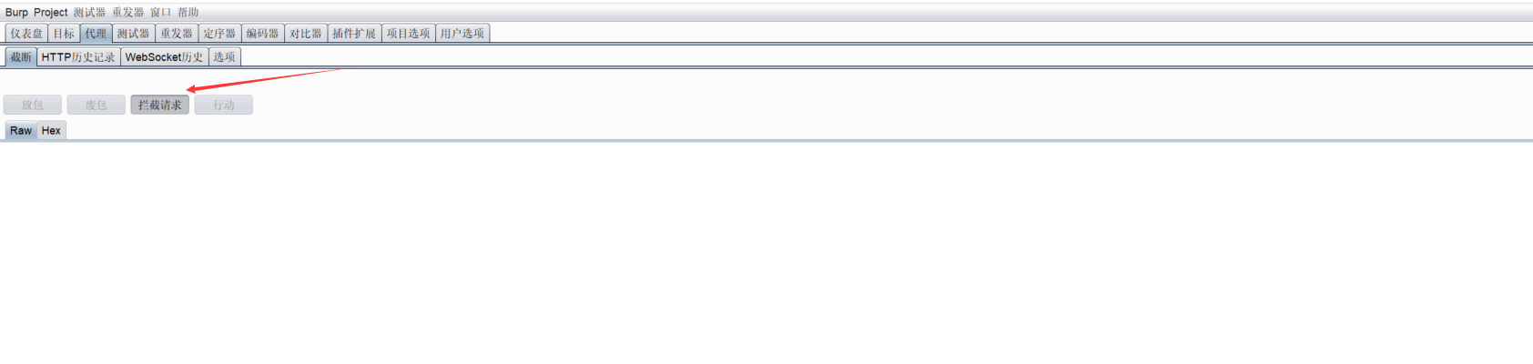 首先打开bp,并设置为拦截状态