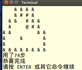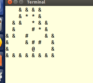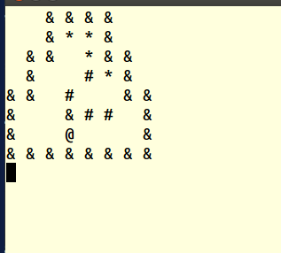 //清理屏幕 ? ? ? ? ? ? system("clear"); ? ? ? ? ? ? for(int i=0;i<8;i++) ? ? ? ? ? ? { ? ? ? ? ? ? ? ? for(int j=0;j<8;j++) ? ? ? ? ? ? ? ? { ? ? ? ? ? ? ? ? ? ? switch(arr[i][j]) ? ? ? ? ? ? ? ? ? ? { ? ? ? ? ? ? ? ? ? ? ? ? case 0: printf("* ");break; ? ? ? ? ? ? ? ? ? ? ? ? case 1: printf(" ?");break; ? ? ? ? ? ? ? ? ? ? ? ? case 2: printf("@ ");break; ? ? ? ? ? ? ? ? ? ? ? ? case 3: printf("# ");break; ? ? ? ? ? ? ? ? ? ? ? ? case 4: printf("& ");break; ? ? ? ? ? ? ? ? ? ? } ? ? ? ? ? ? ? ? } ? ? ? ? ? ? ? ? printf("\n"); ? ? ? ? ? ? } ?