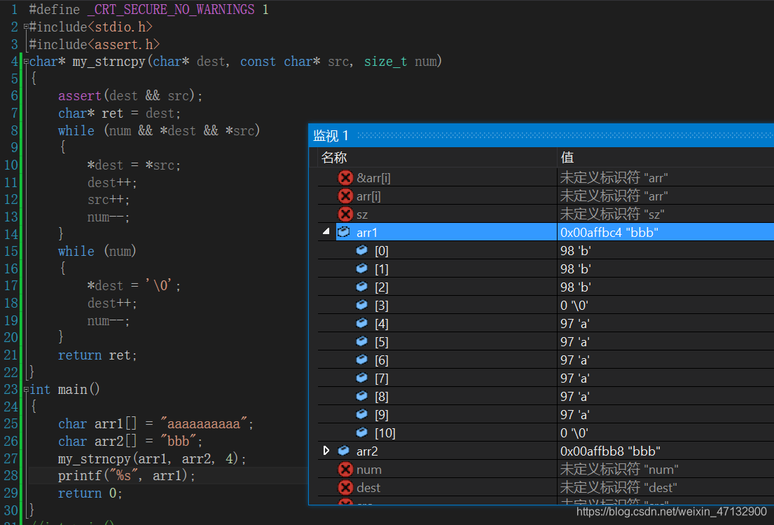 my_strncpy(arr1, arr2, 4);