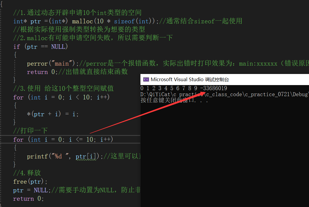 注意: 用malloc申请的空间,里面的内容是随机值,如果不初始化的话,可能就会得到一些意想不到的值;
