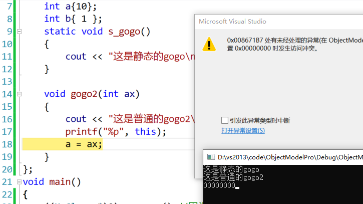 但这种情况是明确不使用多态。虚函数和普通成员函数一样,在内存中也有一个固定的内存地址。也是在编译的时候确定好的。 二、静态成员函数调用方式 在类中添加如下静态函数:  下面是调用方式:  静态成员函数是没有this指针的。上面这三种写法转为汇编是一样的。