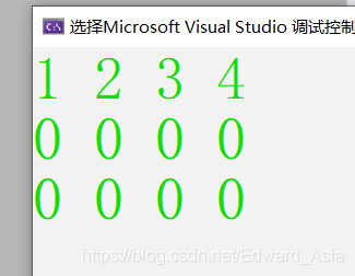 在二维数组中如果我们像这里第一个数组这样初始化,那么它的第一行元素为1,2,3,4 而其他行我们没有初始化,会自动被初始化为0。