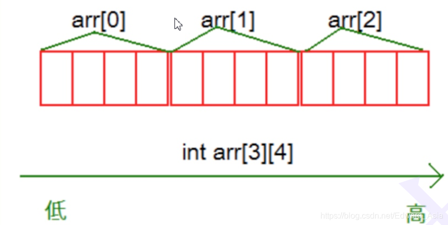 int arr[3][4];//这里的3代表行,4代表列,所以这里表示为一个3行5列的二维数组