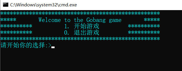运行的结果如图:  屏幕上我们并没有看到棋盘,所以注意: 这里不是棋盘没打印出来,而是我们使用’ '表示空白区域,所以我们看到的棋盘是一片黑色。所以我们选用更加美观的方法打印