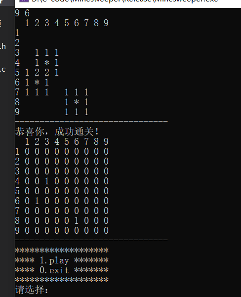 接下来,设计了一个函数来计算此时棋盘上没有展开的位置的数,如果这个数量等于雷数,那么玩家获胜。