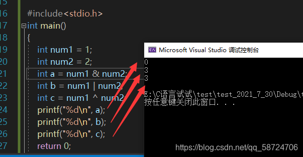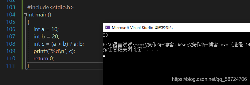 #include<stdio.h> int main() { ?? ?int a = 10; ?? ?int b = a--; ? ?//先使用,再-- ? a先把10赋值给b,然后a--就变成了9 ?? ?int c = --a; ? ?//先--,再使用 ? ?a先从9,++变成8,然后赋值给c ?? ?printf("%d\n", b); ?//10 ?? ?printf("%d\n",c); ? //8
