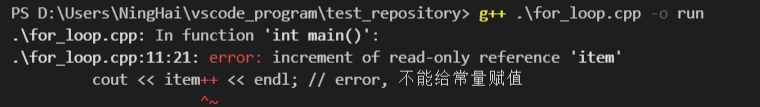 运行结果如下:  从上面的结果中可以看到,不论基于范围的 for 循环迭代了多少次,函数 getRange () 只在第一次迭代之前被调用,得到这个容器对象之后就不会再去重新获取这个对象了。