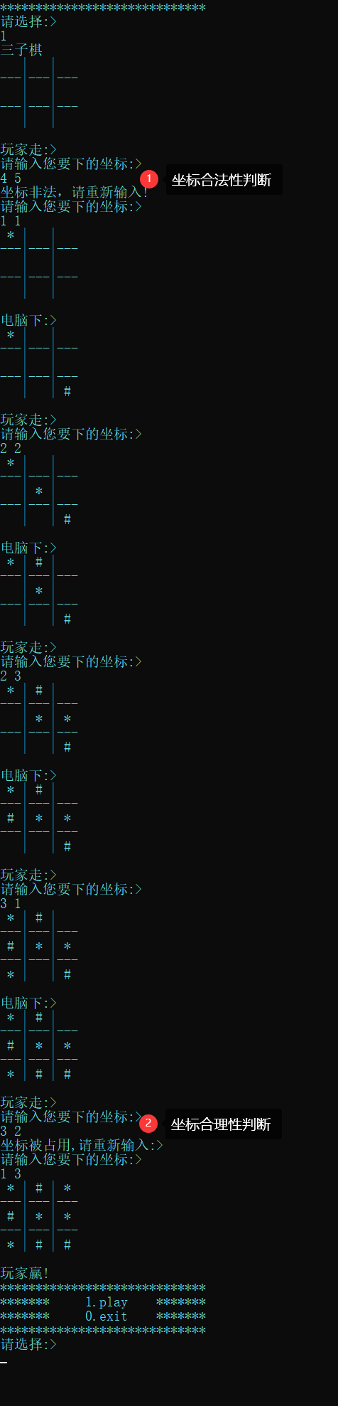 - 输赢判断:(玩家赢?和棋?都没赢继续?)
