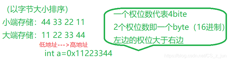 小端:指数据的低位保存在内存的低地址中,而数据的高(权)位,保存在内存的高地址中
