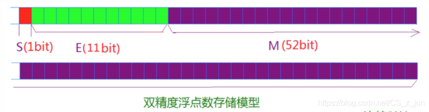 最高的1位是符号位S,接着的11位是指数E,剩下的52位为有效数字M