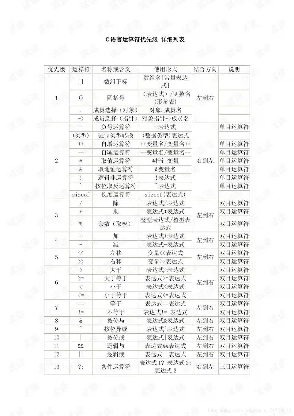 运算符有很多种种类,比如+、-、*、/等就对应加减乘除。和数学中加减乘除的运算有优先级一样,C语言的各种运算符之间也有优先级。(图片是来自网络)