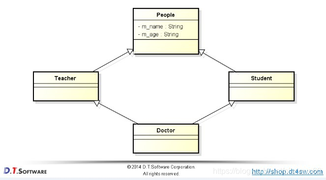 Doctor(string name, int age) : Teacher(name + "1", age+1), Student(name + "2", age + 2), People(name, age) //直接调用顶层父类的构造函数