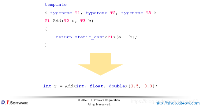 int r3 = Add<int, float, float>(0.5, 0.8); //显示声明